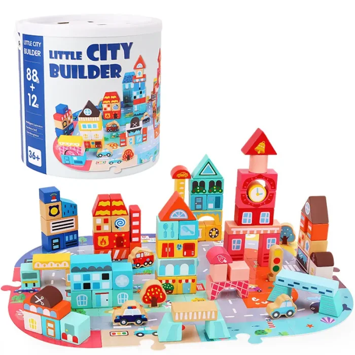 بلوک چوبی خانه سازی بریکس سطلی 88 تکه با صفحه بازی مدل 1232